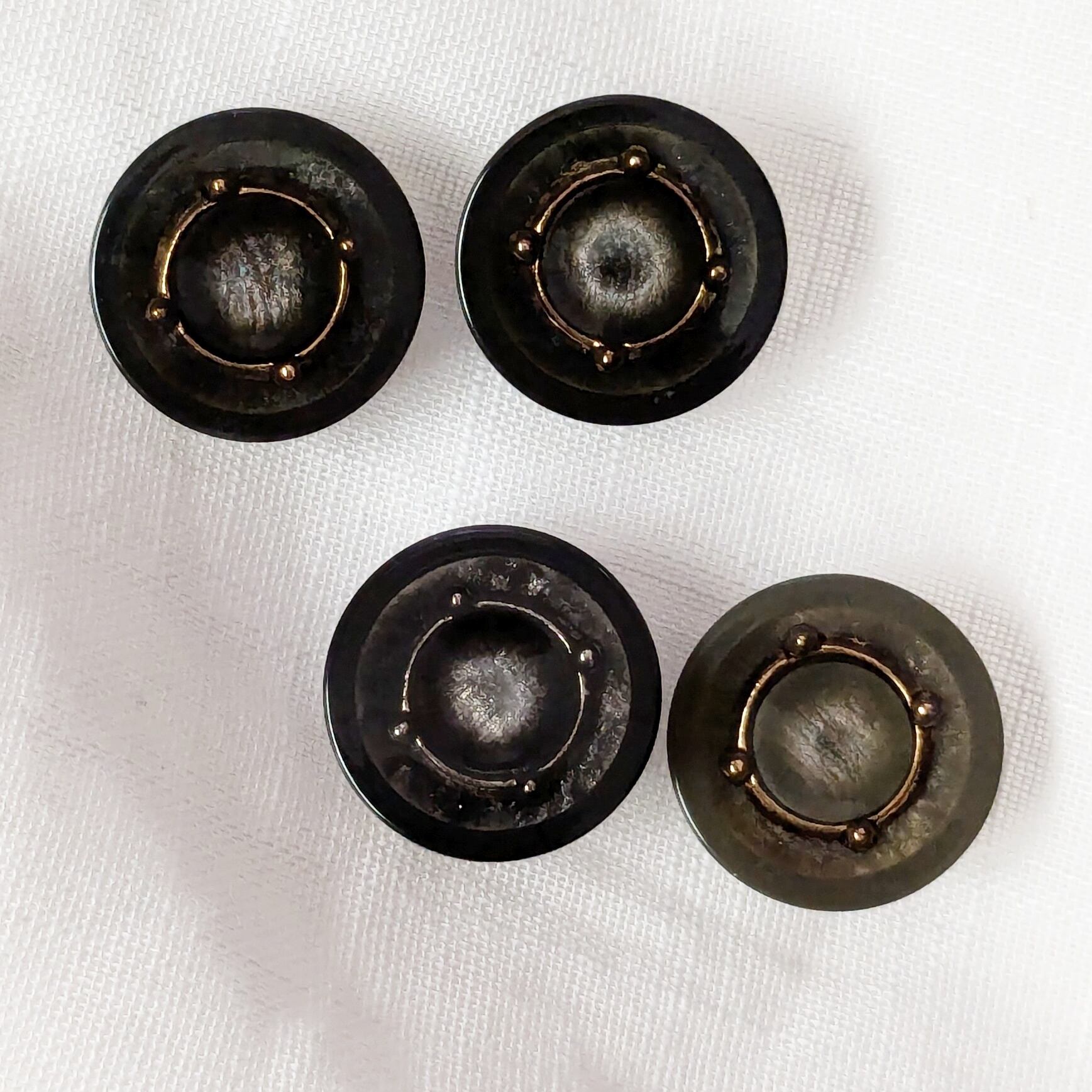 夜の闇のようにもやがかって見通せないような、ダークなカラーのボタンです。